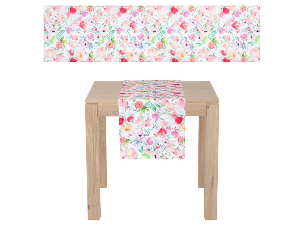 Dekorativní běhoun na stůl o rozměrech 150 × 40 cm s nádherným motivem pivoněk vnese do vašeho interiéru svěžest, eleganci a nádech romantiky. Vícebarevný květinový vzor s bohatými detaily oživí každý jídelní i konferenční stůl a skvěle doplní moderní, venkovský i vintage styl bydlení. Pivoňky jako symbol krásy a hojnosti dodají prostoru příjemnou a harmonickou atmosféru.